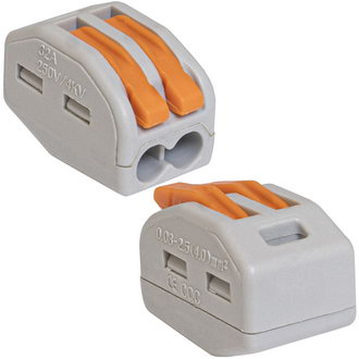 Зажим проводов в клемме осуществляется при помощи оранжевых рычагов