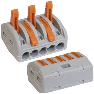 Зажим проводов в клемме осуществляется при помощи оранжевых рычагов